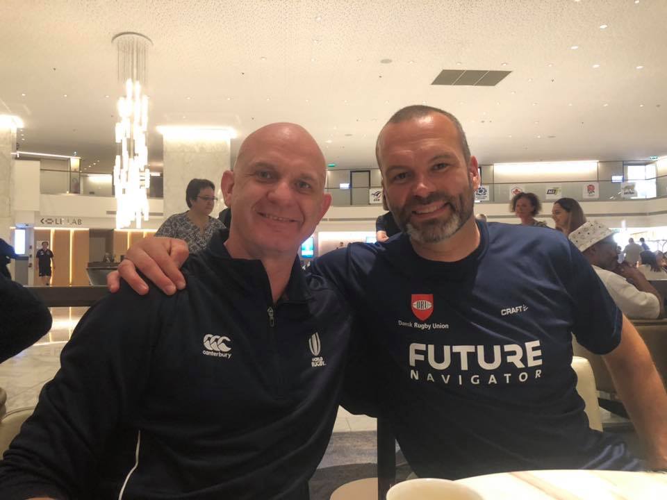 Herover en tidligere formand Jens Skare Nielsen, sammen med en tidligere landstræner Douglas Langley. Begger nu ansat i World Rugby